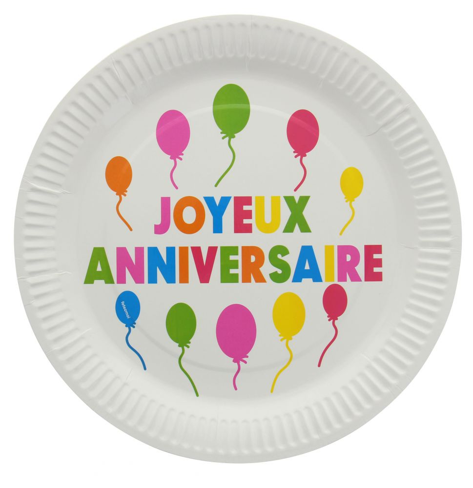Assiette Anniversaire Ballon 23 cm - Carton - 10pcs Assiette Anniversaire Ballon multicolore En Rupture 1,99 € - Matière Carton . - Dimensions ø 23 cm. - Lot de 10 pièces.