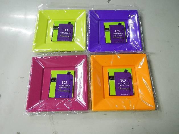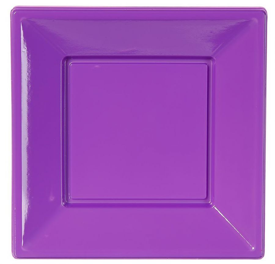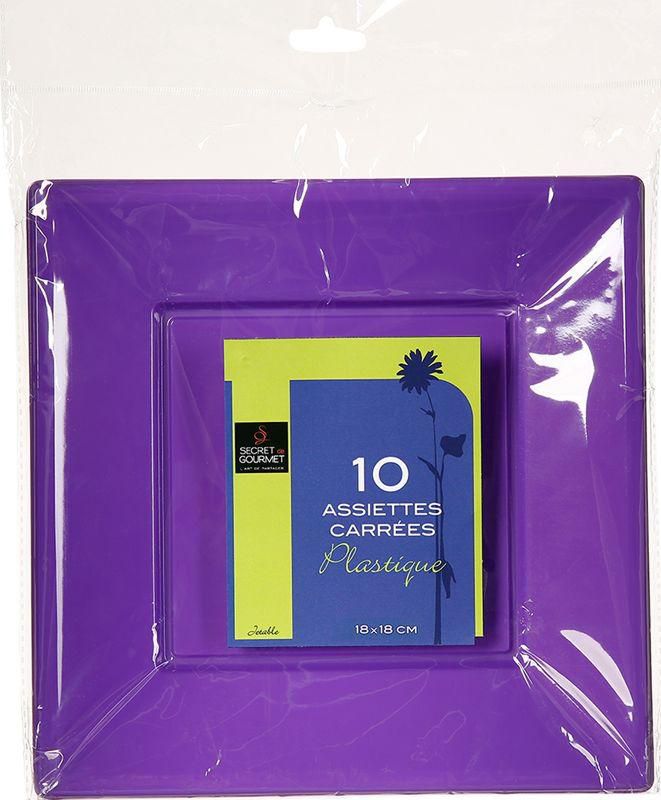 Nos assiettes jetables sont en plastique et vendues en sachet de 10 pièces. Elles mesurent 18 cm par 18 cm et sont carrées.