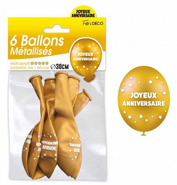 Vendus par sachet de 6 pièces, ces ballons dorés donneront une touche luxueuse et chic à votre déco anniversaire. Ils pourront s'accorder aux tons de votre thème tout en créant un magnifique contraste. De plus, leur matière dispose d'un effet métallique parfait pour créer une ambiance encore plus festive.