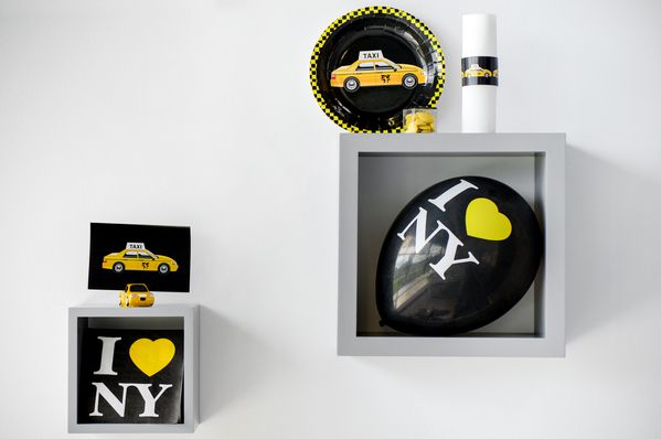 Ce ballon noir imprimé i love New York en jaune et blanc sera parfait pour vos soirée à thème new-yorkaise.