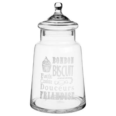 Nous vous proposons cette superbe bonbonnière en verre à petit prix. Avec sa forme originale et ses inscriptions gourmandes, elle sera du plus belle effet sur votre bar à bonbons de mariage.