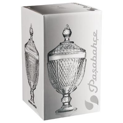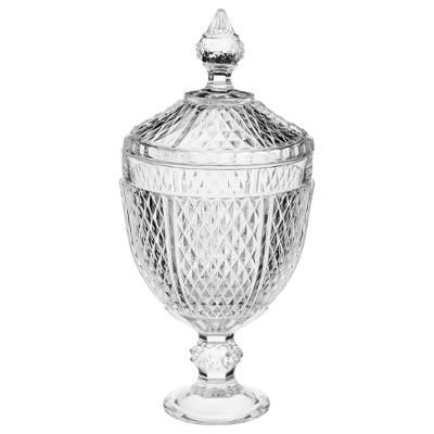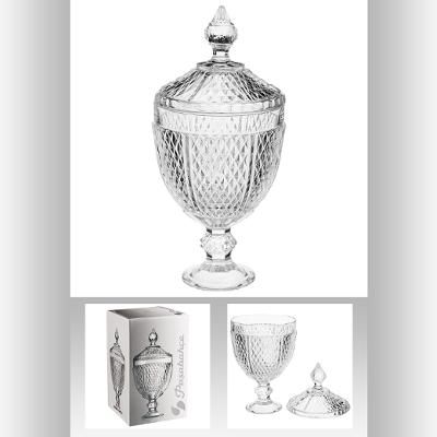 Nous vous proposons cette bonbonnière sur pied de 34 cm avec couvercle en verre ciselé. Idéale pour votre bar à bonbons.