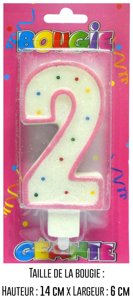 Retrouvez ici une bougie géante chiffre 2 de couleur rose.