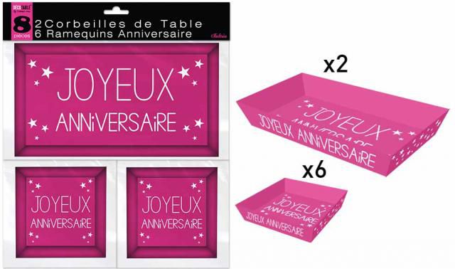 Assortiment de petits plateaux apéro Joyeux anniversaire Fuchsia