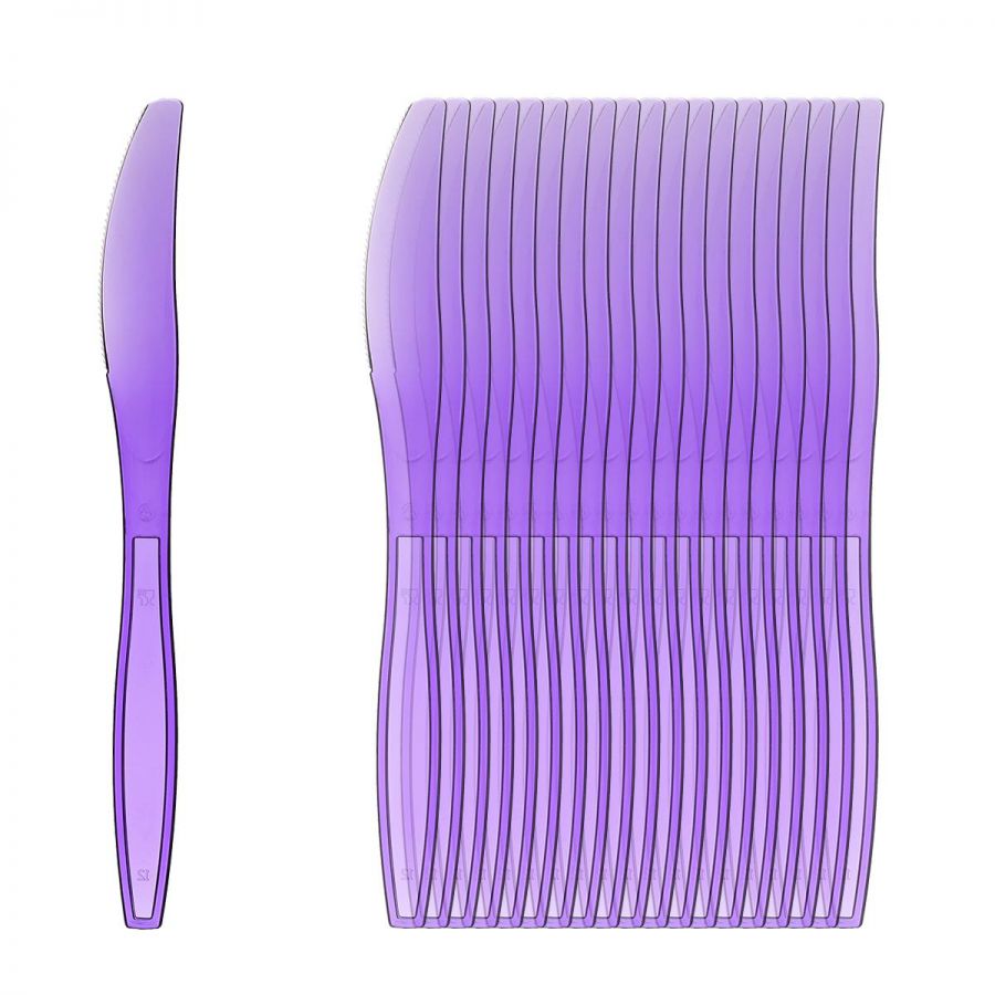 Couteau plastique Mauve Sachet de 20 pièces. Couteaux en plastique Rigide sachet de 20 pièces de couleur mauve. En Rupture 1,29 € - Matière Plastique. - Vendu par 20