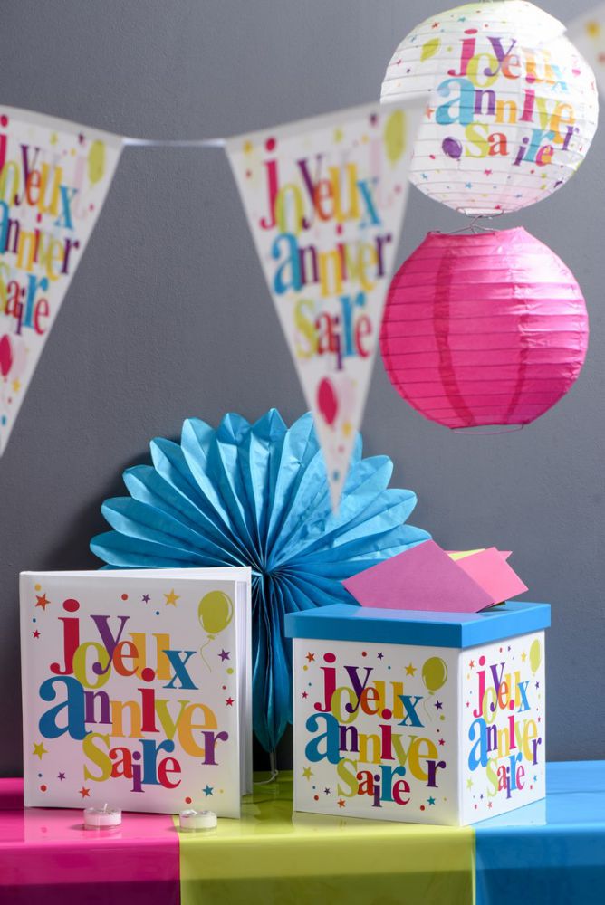 suspension accordeon joyeux anniversaire bleu 73 cm