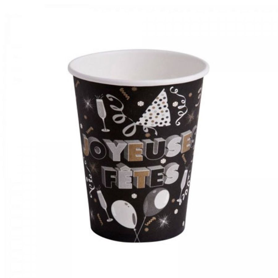 Gobelet Carton Noir Joyeuses Fêtes