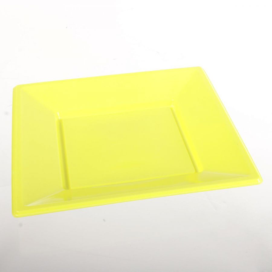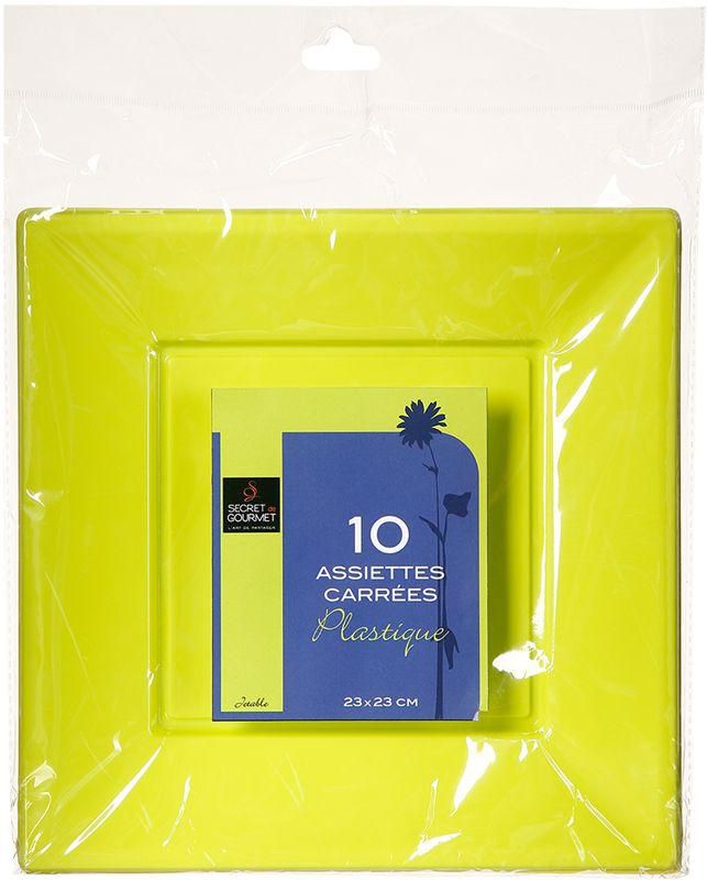 Nos assiettes jetables sont en plastique et vendues en sachet de 10 pièces. Elles mesurent 23 cm par 23 cm et sont carrées.
