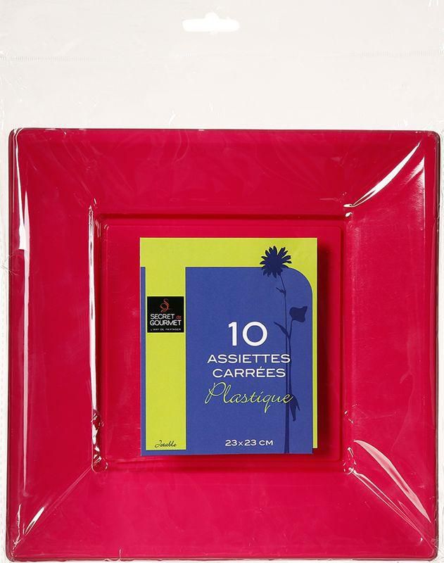 Nos assiettes jetables sont en plastique et vendues en sachet de 10 pièces. Elles mesurent 23 cm par 23 cm et sont carrées.