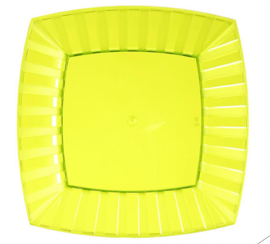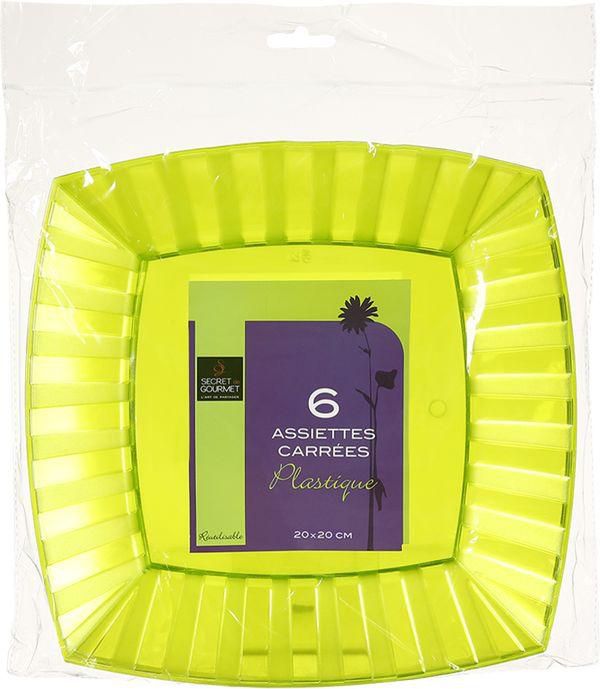 Vendue en lot de 6 pièces, nos assiettes en plastique vertes mesurent 27 x 27 cm et sont en plastique rigide, vous pourrez sans problème les laver à la main et les réutiliser.