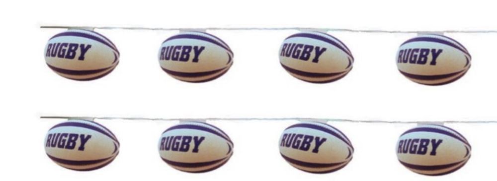 Chouette guirlande de 5 mètres ornée de ballons de rugby idéale pour une soirée rugby ou un anniversaire.