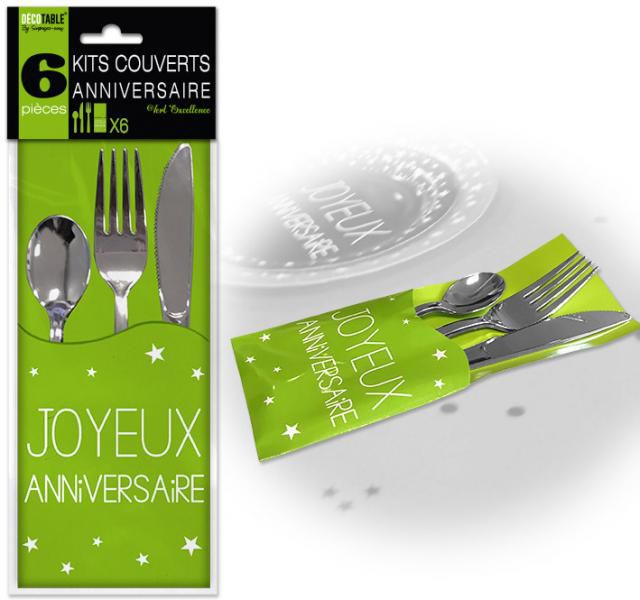 Anniversaire - 24 piècesKit couvert anniversaire Vert.