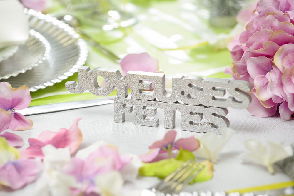 Optez pour ce lettrage "joyeuse fête" argent idéal pour votre décoration de tables de fête de fin d'année surtout si vous avez le souci du détail ! Ils seront la touche chic à votre décoration de table.