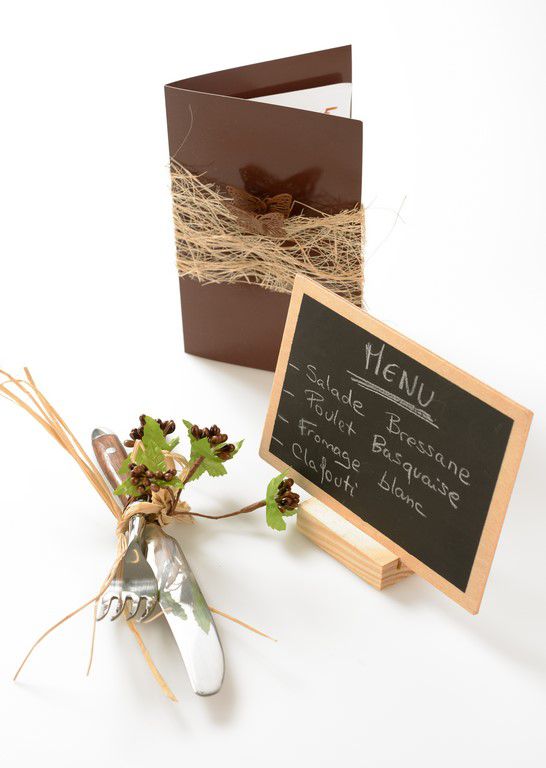 Pensez à assortir votre marque table avec les autres décorations et accessoires selon les même couleurs telles que les serviettes en papier, la vaisselle jetable le livre d'Or et encore bien d'autres.