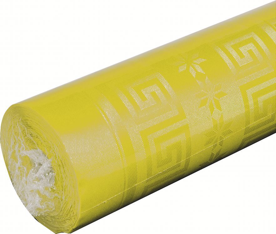 Nappe en papier damassée jaune.