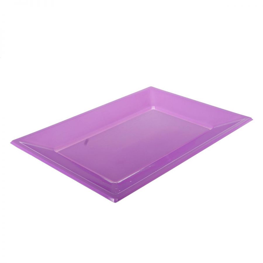 Nos plats jetables sont en plastique et vendues en sachet de 5 pièces. Elles mesurent 23 cm par 33 cm.