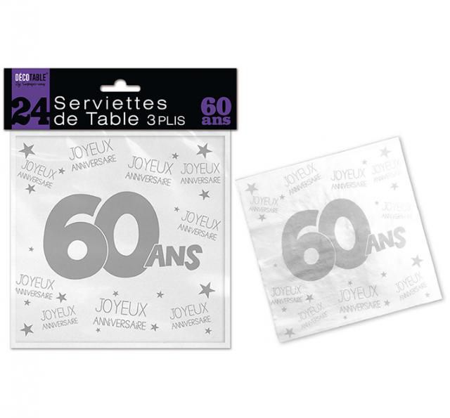 Blanc et argent - 33 cmServiette de table Spécial 60 ans.