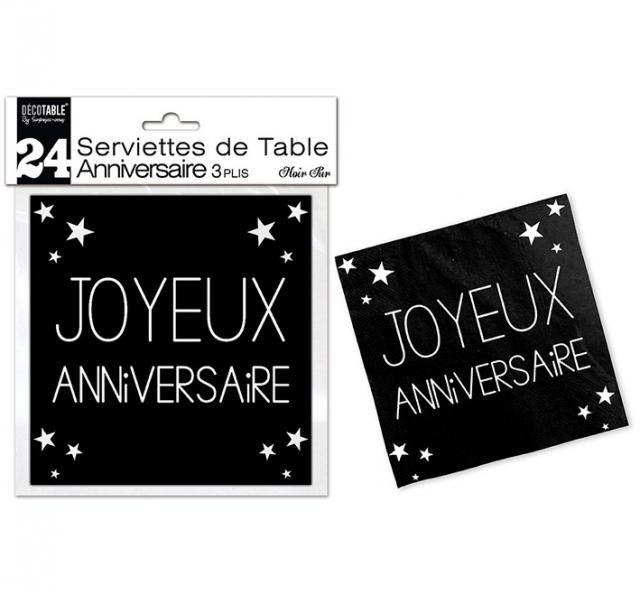 Serviette Anniversaire 3 plis Noir Papier - 33x33 cm - 24 pcs Serviette de table Anniversaire Noir Pur. En Rupture 2,39 € - Matière Papier - Dimensions 33cm. - Couleur Noir. - Vendu en lot de 24.