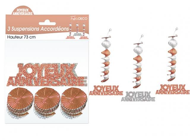 suspension accordeon joyeux anniversaire cuivre rose 73 cm