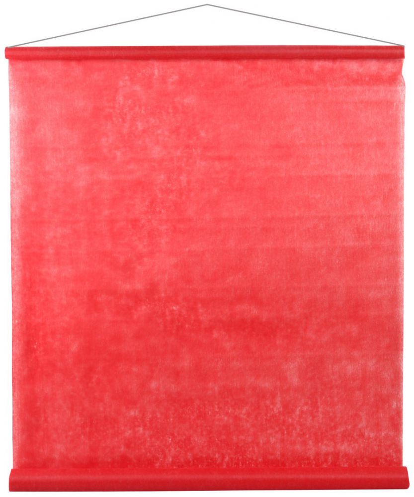 Cette tenture est en tissus non tissé polyester avec des barres rigides aux extrémités. Le système d'accrochage est en fil de type nylon et très résistant. Elle se vend à l'unité en rouleau de 8 m x 70 cm.