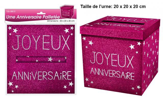 Urne Anniveraire Pailletée Fuchsia 20 x 20 x 20 cm Urne d'anniversaire à paillettes Fuchsia. En Rupture 5,99 € - Matière Carton. - Dimensions 20 x 20 x 20 cm. - Sachet de 1 pièce.