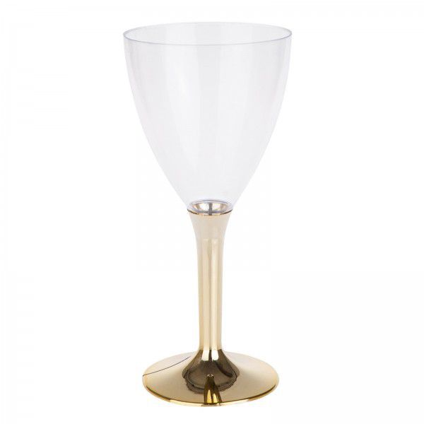 Verre à vin en plastique Transparent 18 cl pied Or.